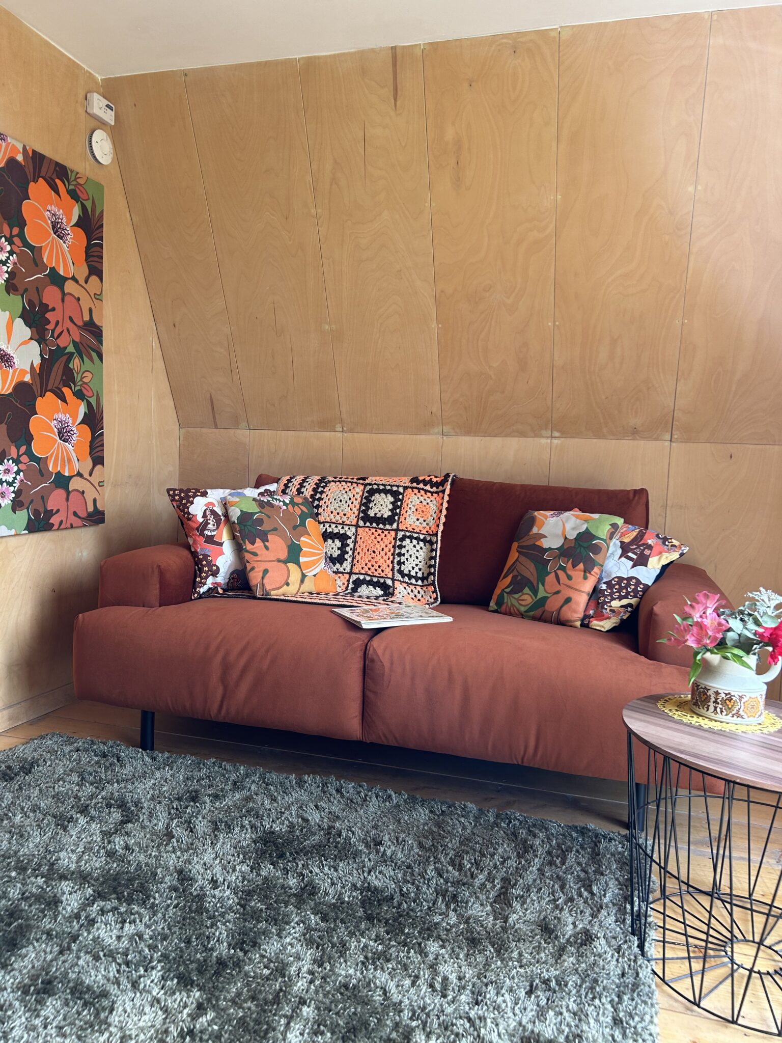 Natural wood textures and colours with a hint of 70’s boutique style